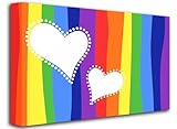2 Hearts On Rainbow Stripes, Taille: 40" x 26" (100cm x 65 cm Approx), Abstrait Moderne Art de Toile Print Photo, (TOILE CADRER)